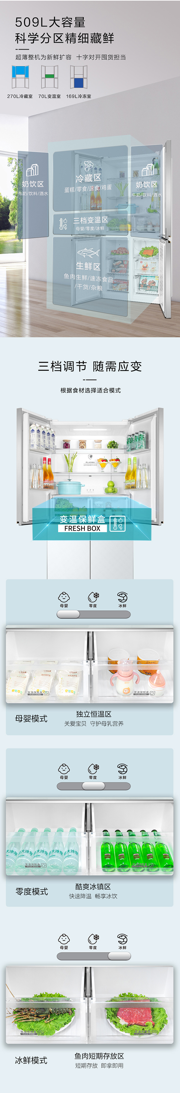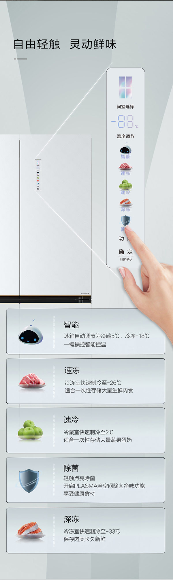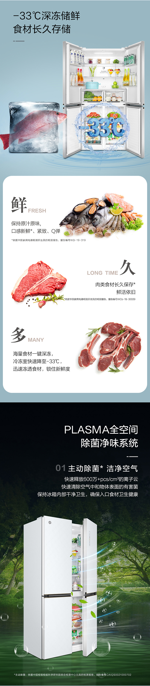 -33攝氏度深凍儲鮮;PLASMA全空間除菌凈味;平齊不凸出;雙通道循環散熱