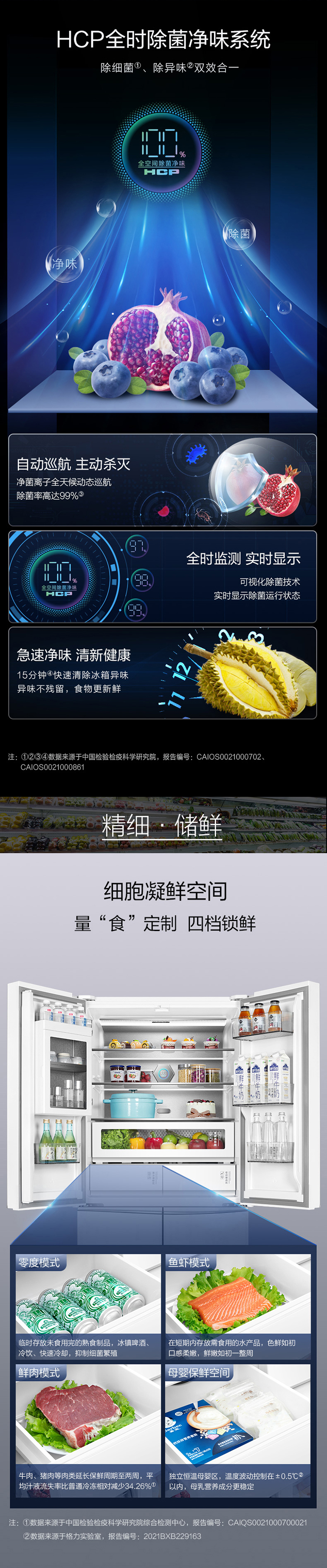 -38℃超凍鎖鮮;光合水潤養鮮;嫩凍凝鮮2.0;HCP全時除菌凈味
