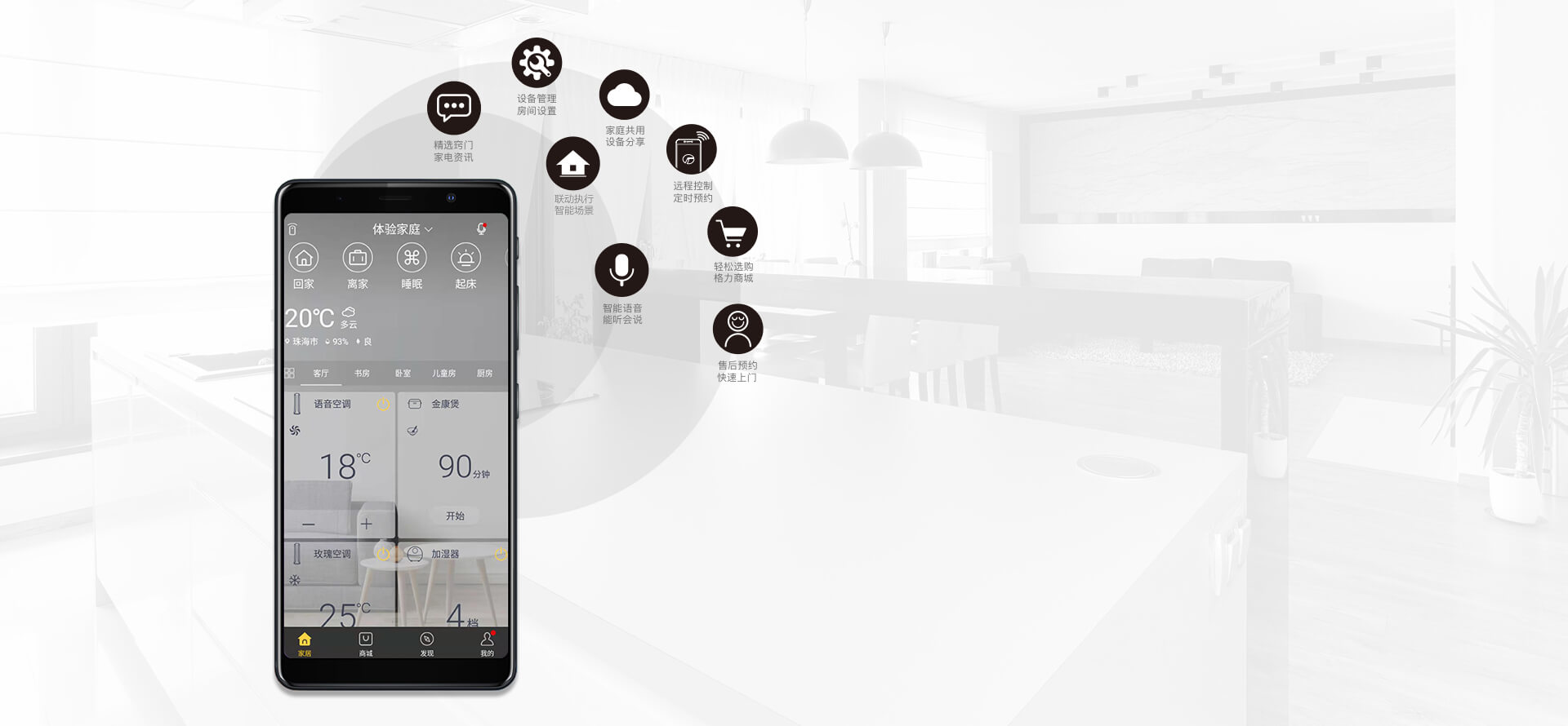 遠程控制,語音控制,遙控器控制,定時開關.搭配格力智能家電,定制專屬場景聯動